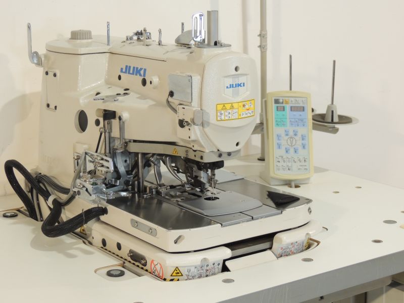 Macchina occhiellatrice a punto catenella doppia, con filo della virgolina, motore diretto, tensione elettronica del filo ago e del crochet, possibilità di terminare l'occhiello senza la sovrapposizione o con la chiusura la travetta dritta o semicircolare o con la coda, lunghezza del taglio occhiello da 10 a 38 mm. con dispositivo taglio multiplo che permette l'esecuzione anche in sequenza di occhielli e asola dritta di diverse forme lunghezze senza sostituire il martello e coltello, possibilità di effettuare il taglio prima o il dopo la fine della cucitura dell'occhiello, sistema rasafilo con fili lunghi con dispositivo per pinzare il filo ago, velocità fino a 2200 p/min., pulsanti per il posizionamento e la partenza della cucitura sulla testa, indicata per capospalla e giacche uomo.